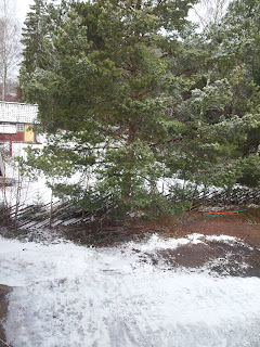 Alltså va??? Två timmar norr om stan ligger ett 1dm tjockt lager snö... Snö i april? Jag som trodde våren var på väg?